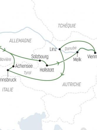 Circuit romantique de l’Autriche, le pays de Sissi ! Les plus belles villes d’art et les plus beaux paysages : le pays de Salzbourg, la vallée de la Wachau, Vienne la capitale baignée par les eaux du Danube et pour finir, les belles montagnes du Tyrol et Innsbruck.
