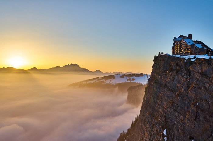 Le matin, balade à pied ou en raquettes en compagnie de votre moniteur sportif au Mont Caly aux Gets profitant de beaux panoramas sur le Mont Blanc. Déjeuner à l’hôtel. Après-midi, excursion à Megève, élégante station des Alpes françaises avec son charme médiéval. Dîner savoyard et logement à l’hôtel.