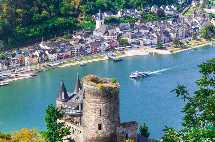 Embarquement à bord d’un navire de la KD et croisière le long du Rhin romantique ou Vallée du Haut-Rhin, la plus belle partie du Rhin classée au patrimoine mondial de l’UNESCO. Arrivée au port de St-Goarshausen et débarquement. Déjeuner au restaurant à Rüdesheim. L’après-midi, découverte de l’Abbaye Sainte-Hildegarde d'Eibingen, haut lieu du catholicisme allemand. De retour à Rüdesheim, temps libre dans la petite bourgade pittoresque. Retour à l’hôtel, dîner et logement.